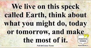 We live on this speck called Earth, think about what you might do, today or tomorrow, and make the most of it.