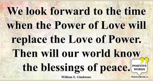 We look forward to the time when the Power of Love will replace the Love of Power. Then will our world know the blessings…